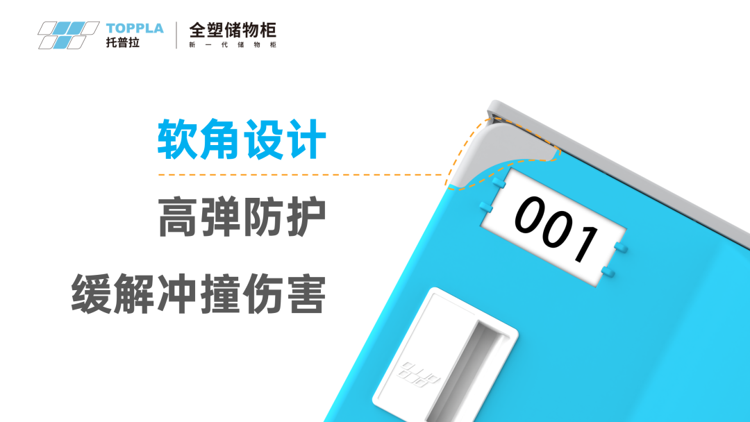 托普拉新一代全塑储物柜采用无尖角设计,柜门直角处配备软角防护,有效减少了磕碰风险,从细节呵护。